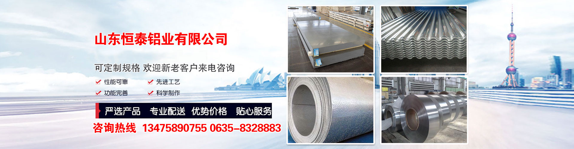 山东恒泰铝业有限公司是以铝材类为主的大型实体企业,主营(1100/1060/3003/5052/5754/6061/6063/6082/7075/LY12等)花纹铝板、纯铝板、铝合金板、瓦楞铝板、橘皮铝卷、彩涂铝卷、保温铝卷等。公司产品质量高、价格低、供货快、深受国内外用户的好评。产品广泛用于照明灯饰、太阳能反射片、建筑外观、室内装潢、天花板、墙面等、家具、橱柜、电梯、标牌、铭铝板牌、箱包、汽车内外装饰、室内装饰品、航空航天以及军事方面、机械零件加工 、模具制造 、化工/保温管道包覆、优质船板等各种行业。 公司遵循客户至上,诚信为本的经营方针,以合理的价格,优良的信誉竭诚为社会各界朋友提供全面有效的服务。我们始终坚持互惠互利,薄利多销的经营策略,完善销售服务体系,不断把创新、优良的产品送到客户身边,与广大客户共创一个互惠互利的合作平台...